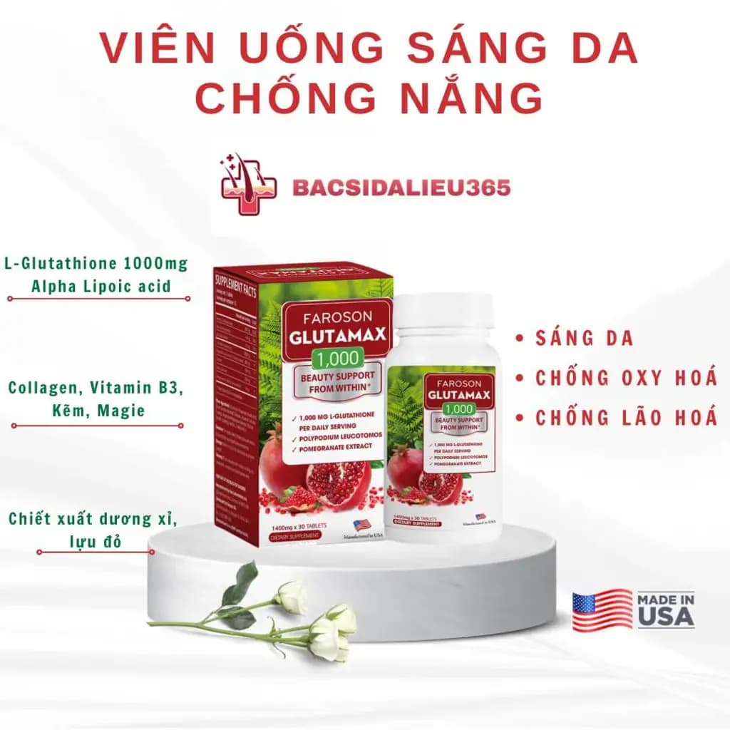 Viên Uống Faroson Glutamax 1000 - Trắng Da & Chống Nắng Mỹ (30v)